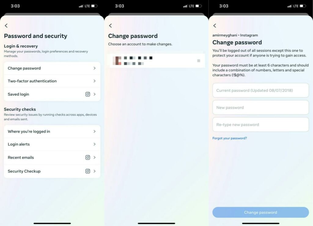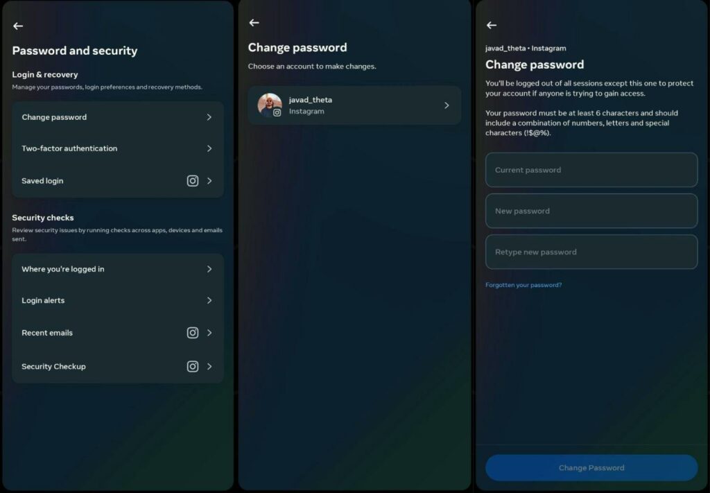 برای تغییر رمز اینستاگرام یا ریست آن در صورت فراموشی، می توانیم از خود اپلیکیشن یا وبسایت آن استفاده کنیم. برای انجام این کار فقط چند قدم کوچک لازم است. با این حال، دانستن رمز عبور قبلی برای تنظیم رمز عبور جدید یا دسترسی به ایمیل یا شماره تلفن همراه برای بازنشانی آن الزامی است. همچنین توجه داشته باشید که اگر از طریق فیس بوک وارد حساب اینستاگرام خود شده اید، باید رمز عبور آن را از تنظیمات فیس بوک تغییر دهید.