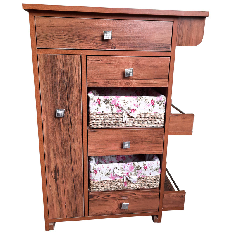 دارای یک کشوی بزرگ جهت قرارگیری قاشق و چنگال دارای سه عدد کشو کوچکتر جهت قرار گیری سایر ملزومات آشپزخانه تمامی کشوها و محفظه سمت چپ دارای ریل هستند. دارای دو سبد حصیری مخصوص سیب زمینی، پیاز یا سایر صیفی جات محل قرار گیری دستمال کاغذی دارای دو طبقه سمت راست مخصوص ادویه یا بطری محفظه ریلی سمت چپ با دو طبقه مخصوص ادویه یا مایعات