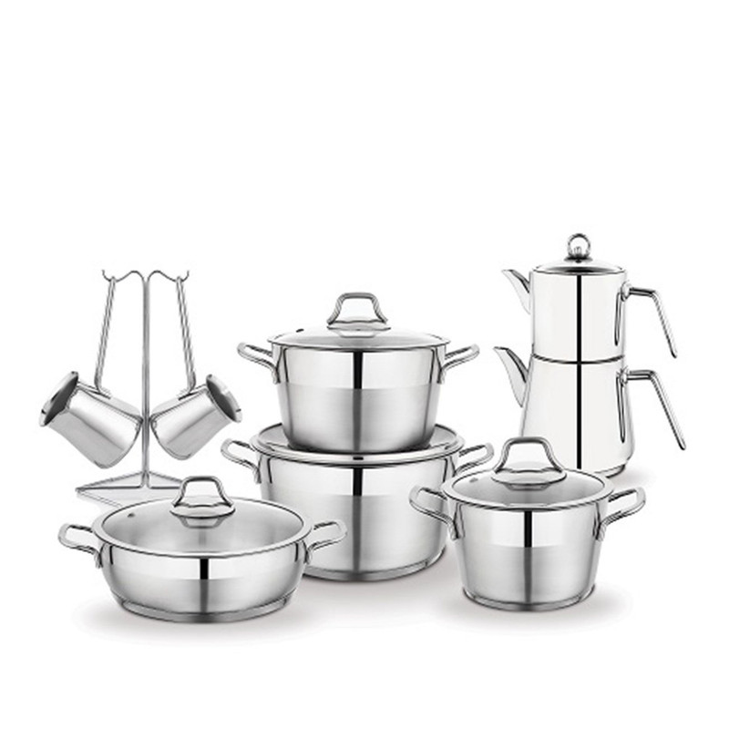 محصول 15 پارچه شامل: قابلمه سایز 16 به همراه درب پیرکس قابلمه سایز 20 به همراه درب پیرکس قابلمه سایز 24 به همراه درب پیرکس نیم قابلمه سایز 24 به همراه درب پیرکس سرویس کتری و قوری 4 تکه سرویس 3 تکه شیرجوش